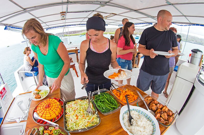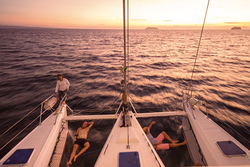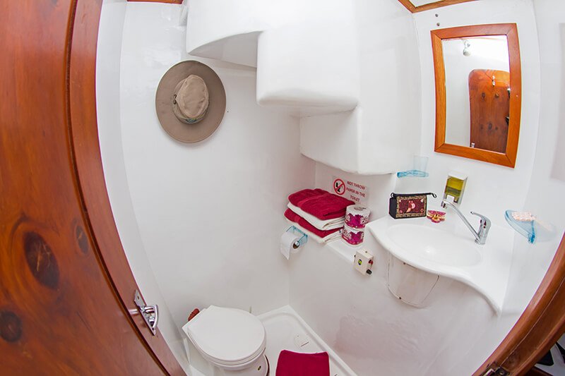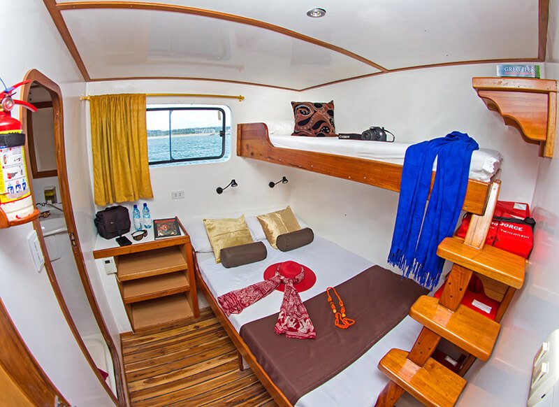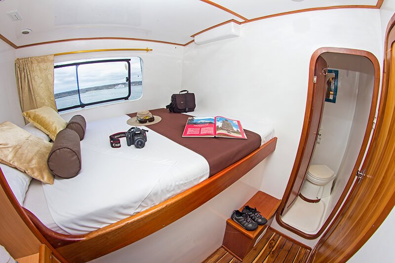 Der Lonesome George ist ein sympathischer kleiner Galapagos Kreuzfahrt Katamaran mit Platz für 16 Passagiere in 8 Doppelkabinen. Diese verfügen jeweils über elektrische Duschen und Klimaanlage. Zudem bietet der Katamaran die Option drinnen oder draussen zu speisen. Alle Instrumente des Bootes werden durch Solarpanels betrieben.